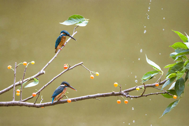 翠鸟栖息 雨中觅食