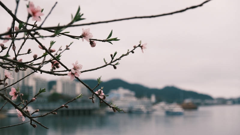 桃花盛开的港口