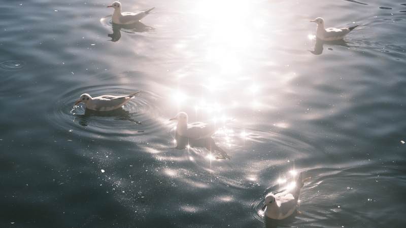 湖面鸭子戏水图