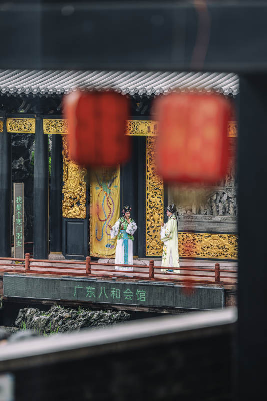 古戏台上的戏曲演员