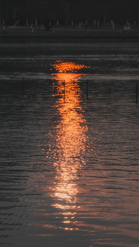 夕阳映水 光辉洒落