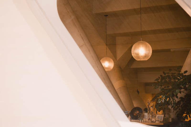 悬挂的灯光与绿植