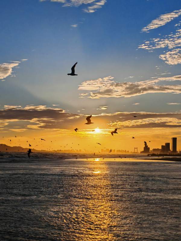 海鸥与夕阳共舞