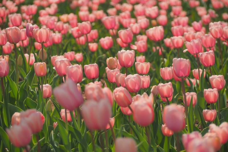粉色郁金香花海盛开