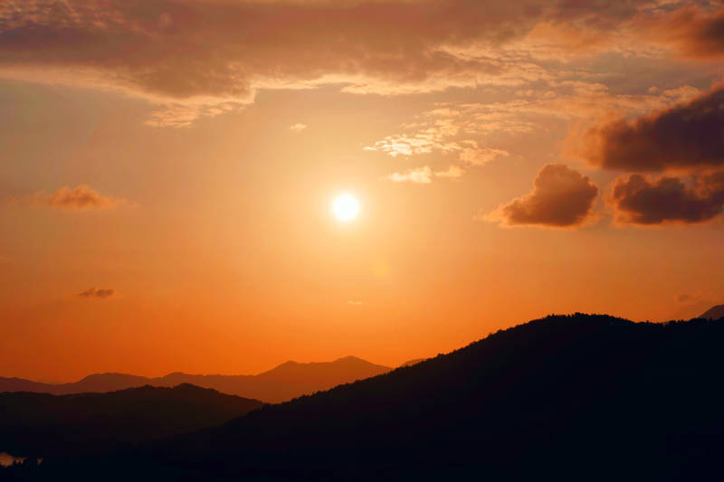 夕阳西下山峦剪影