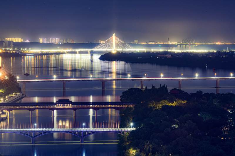 夜色中的桥梁与城市