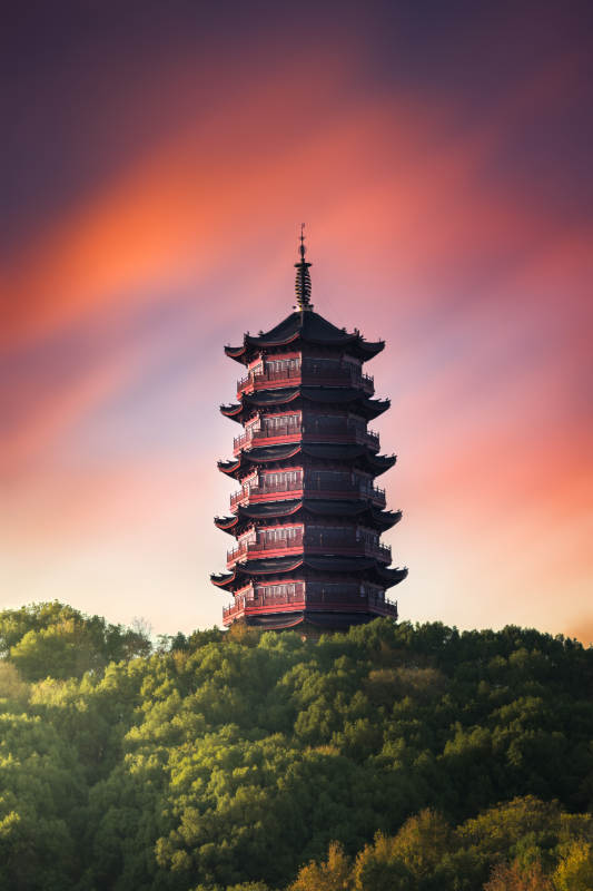 夕阳下的古塔