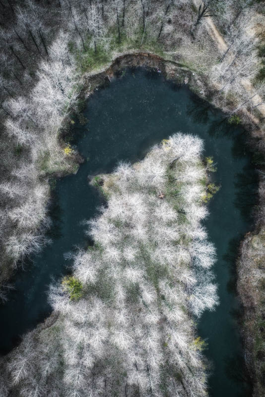 冬日森林中的神秘湖泊