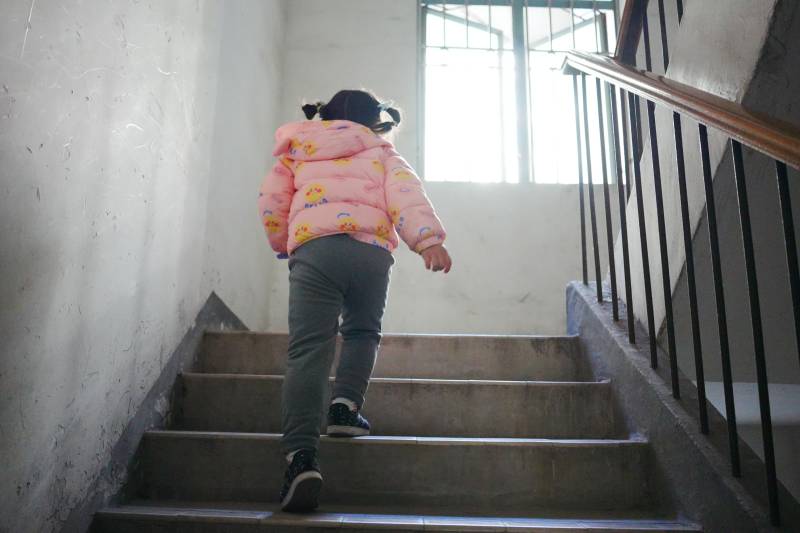 小女孩爬楼梯
