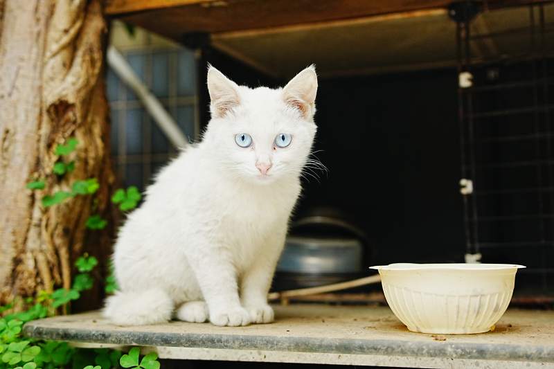 白猫与它的食碗