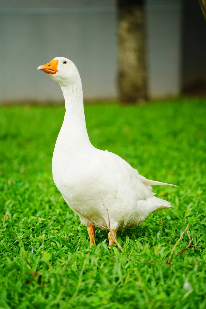白鹅漫步青草地