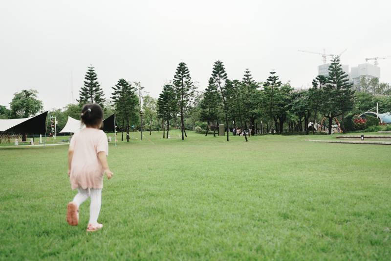小女孩在公园奔跑