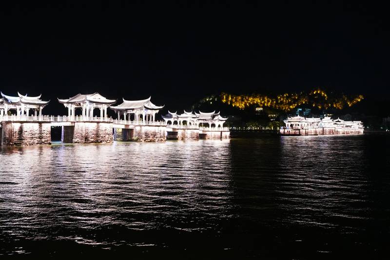 夜色中的水上古建筑