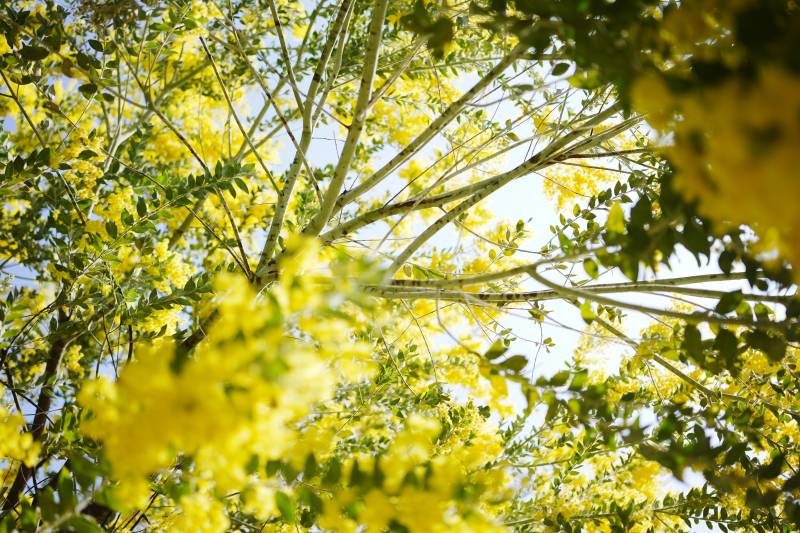 阳光下的黄花树
