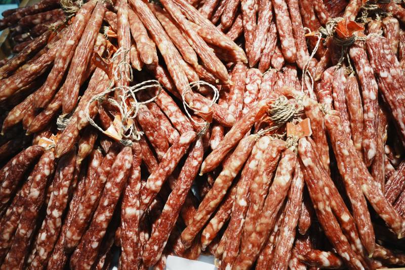 市场上的香肠