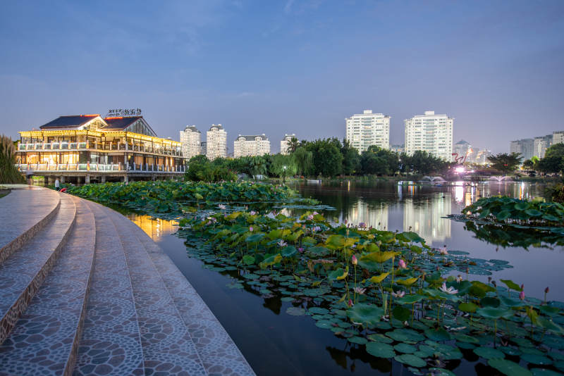 城市湖畔夜景