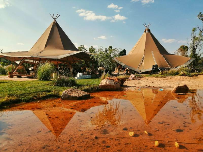 户外公园沙滩帐篷倒影