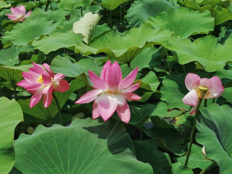 池塘里的粉色荷花莲花