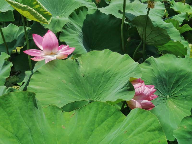荷叶间的两朵荷花莲花