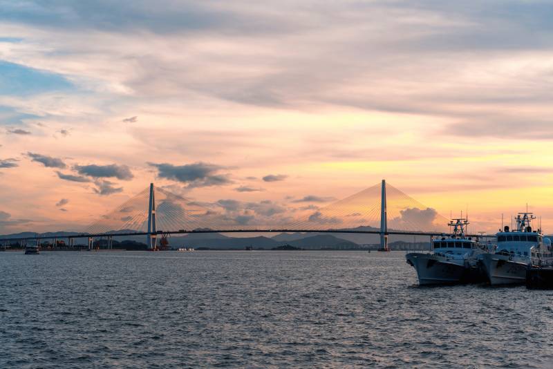 夕阳下的汕头礐石大桥