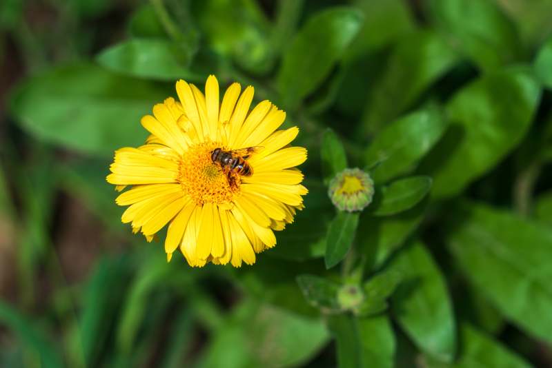 黄色小花在绿叶间