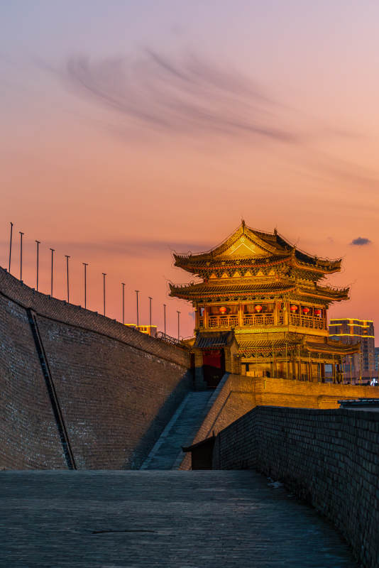 黄昏下的榆林南门古城墙