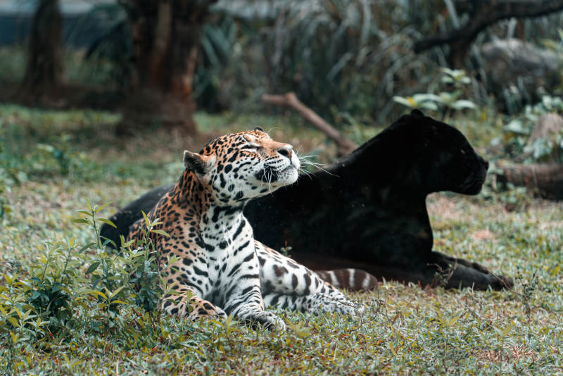 豹与黑豹共栖草地