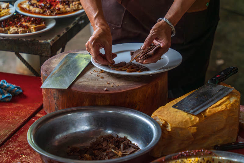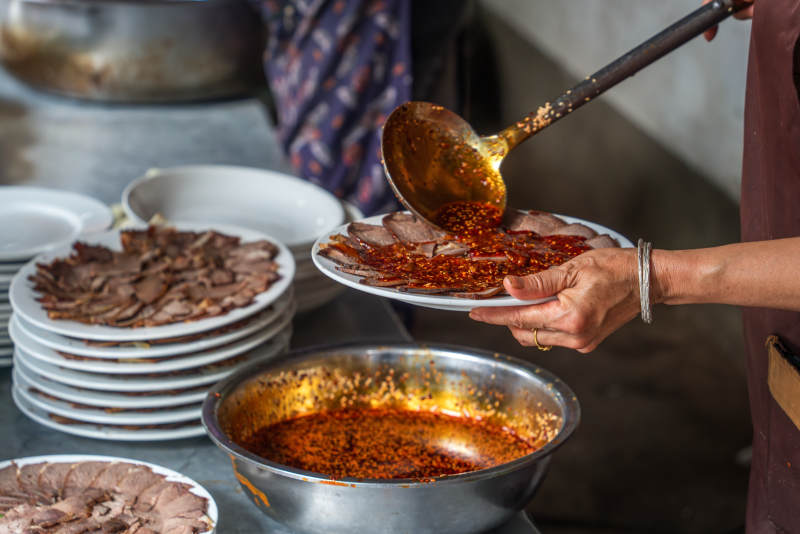麻辣牛肉片制作现场