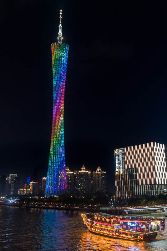 广州塔夜景与珠江游船