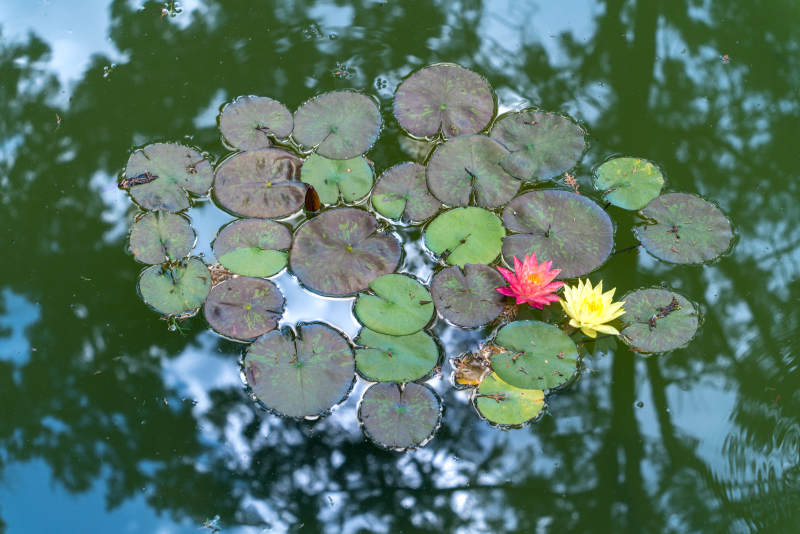 池塘中的睡莲与荷叶