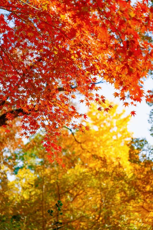 秋日红叶映蓝天