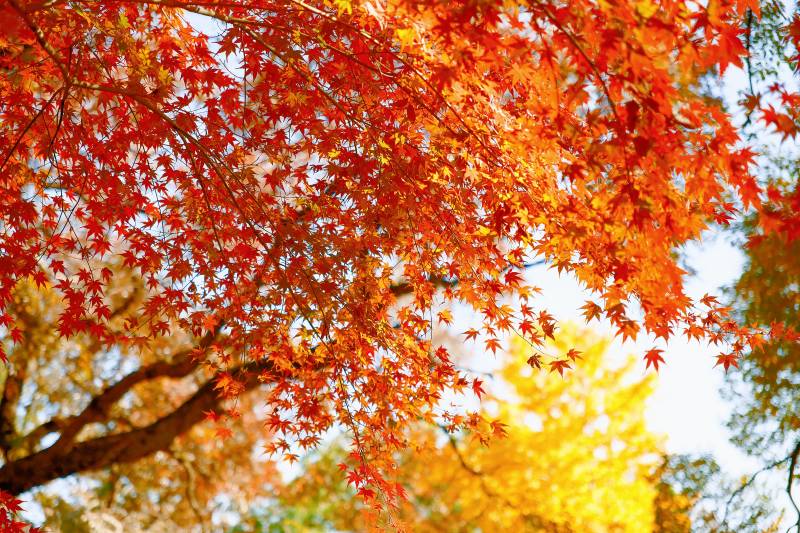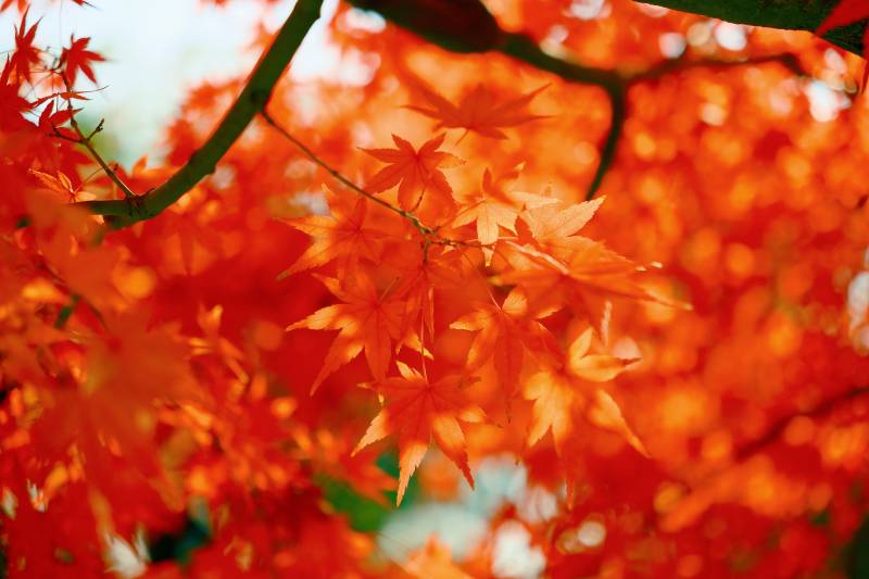 秋日红叶映阳光