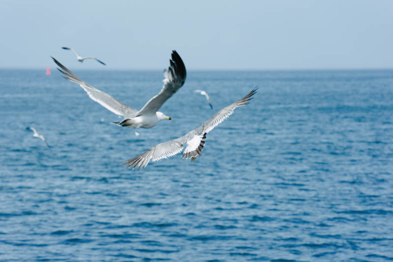 海鸥翱翔碧海蓝天