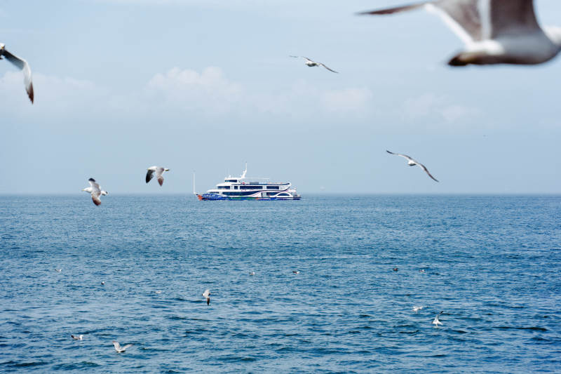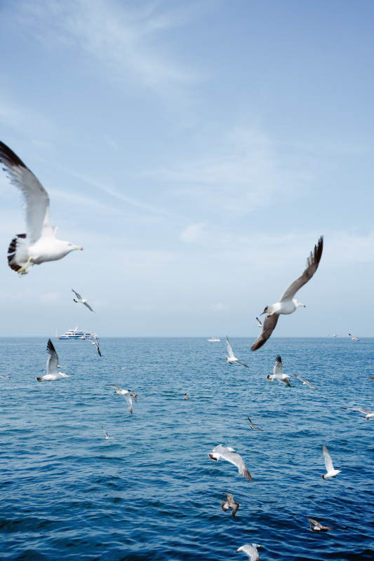 海鸥翱翔 船行碧波