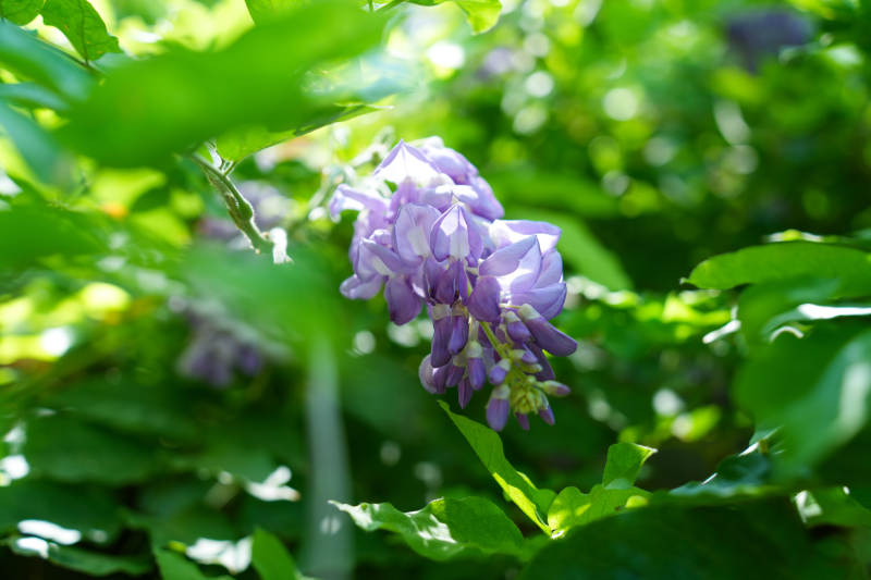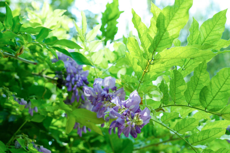 紫藤花在绿叶间绽放