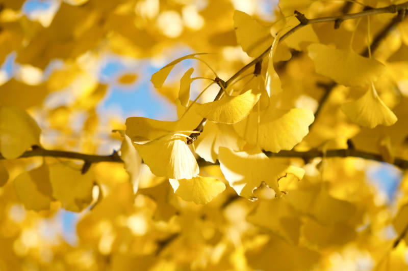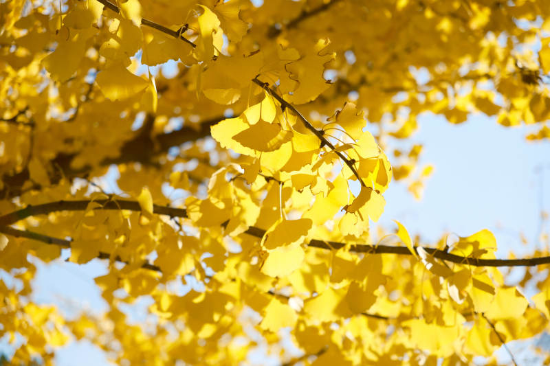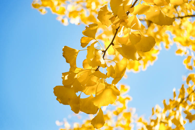 秋日银杏叶映蓝天