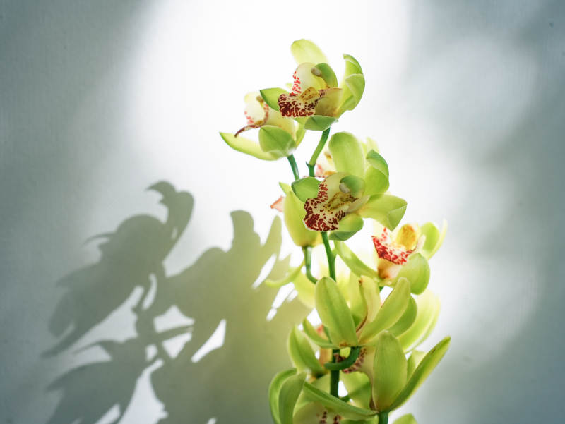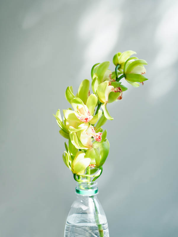 绿意盎然的瓶中花影大花蕙兰