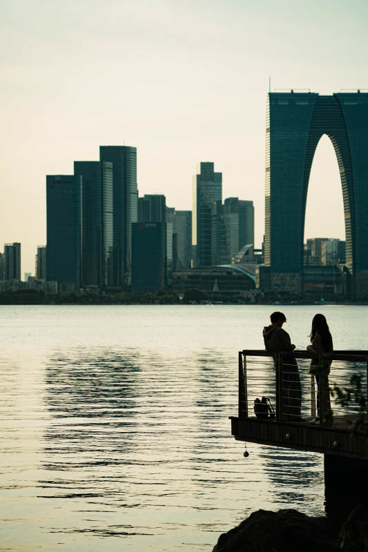 金鸡湖湖畔静坐 城市远眺
