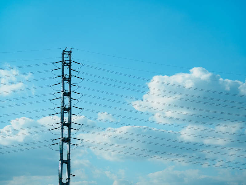 蓝天白云下的电线塔