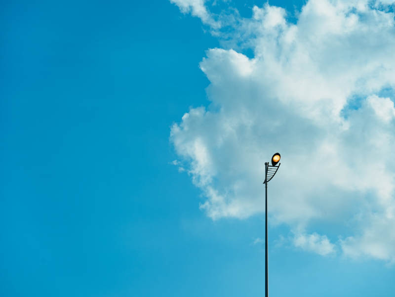 蓝天白云下的路灯