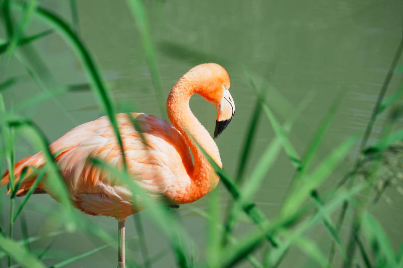 粉红火烈鸟在绿草中