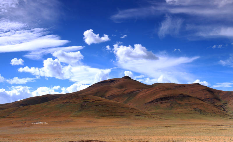 川西高原蓝天白云下的山脉