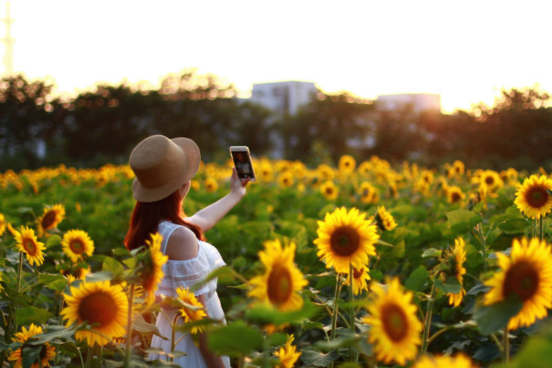 向日葵田里的自拍时光