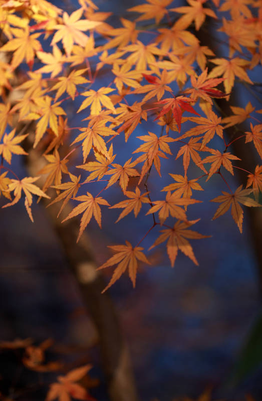 深秋金色枫叶光影特写