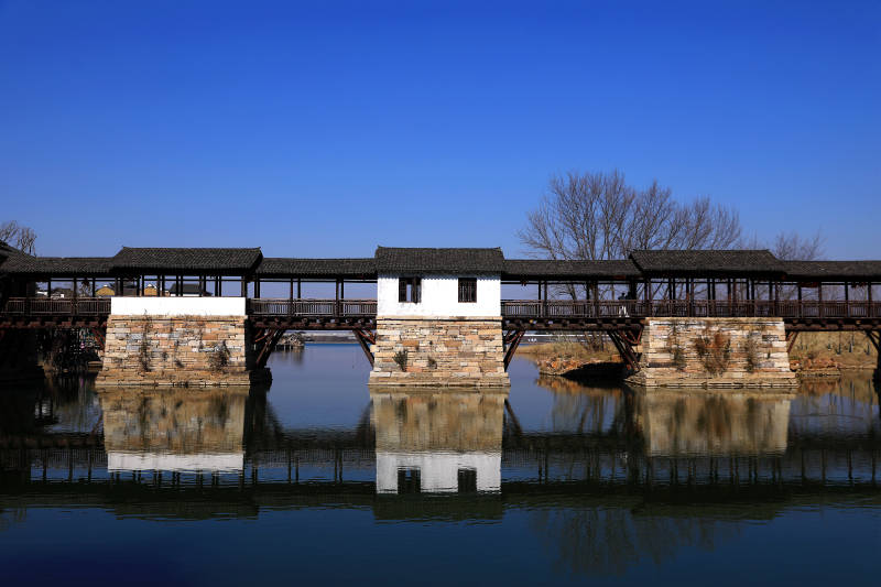 宜兴窑湖小镇古桥倒影