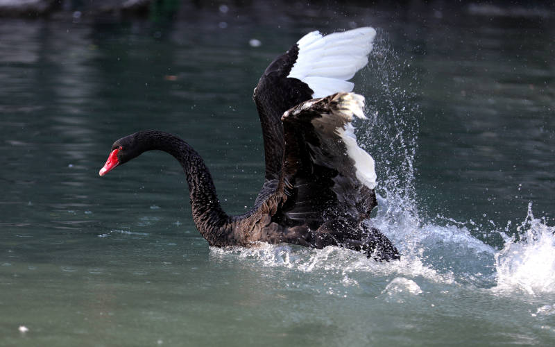 公园池塘里嬉戏的黑天鹅