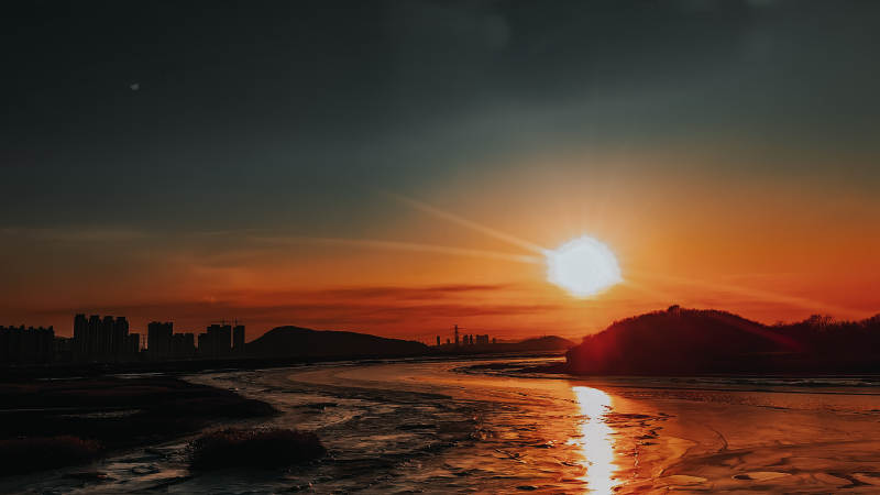 夕阳下的城市剪影,大连