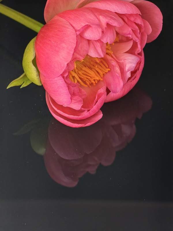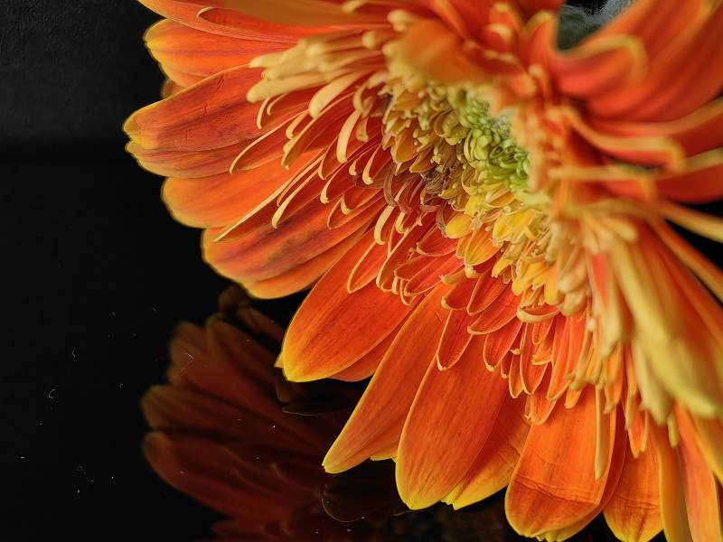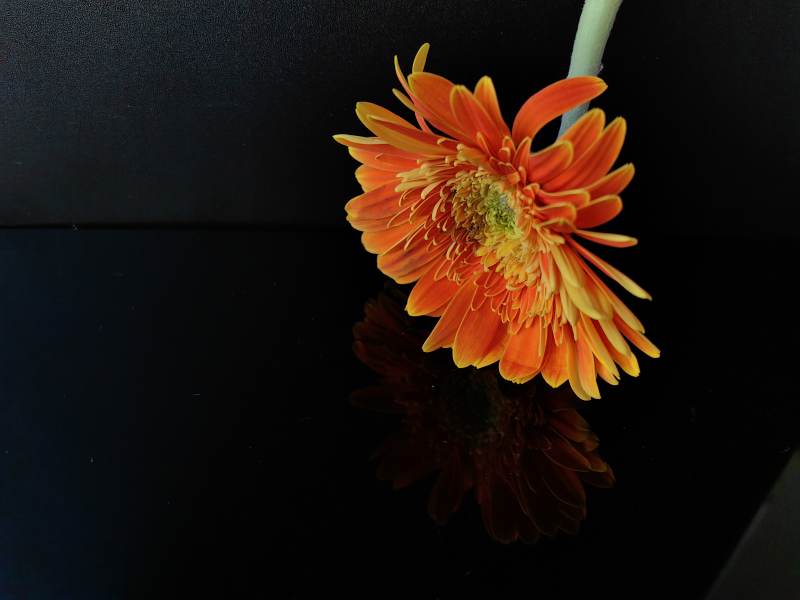 橙色花朵的倒影