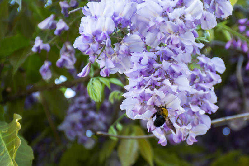 紫藤花与蜜蜂共舞