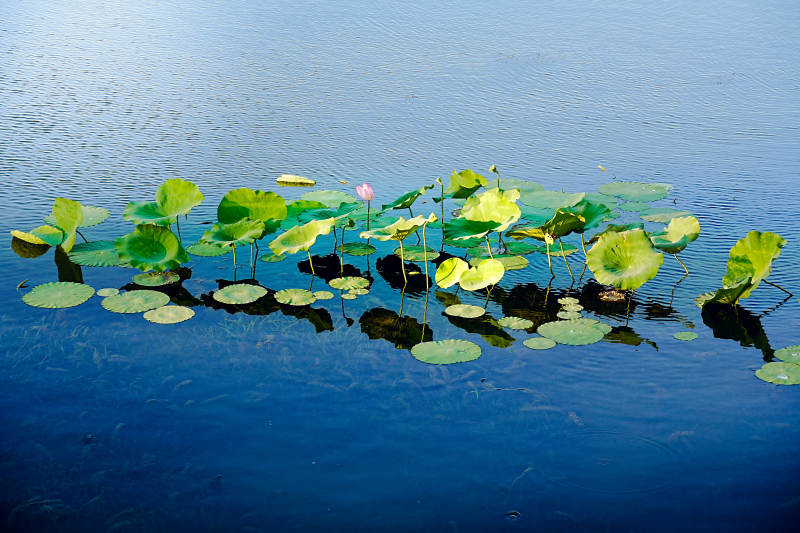 荷叶浮水面 静谧湖光景